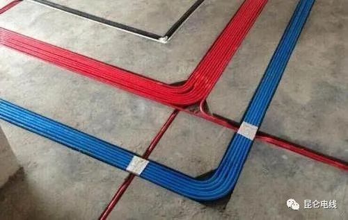 在标准装修施工时,强弱线路必须采用PVC管进行套管保护,并通过不同颜色的PVC管进行区分,通常红色PVC管为强电,蓝色PVC管为弱电。